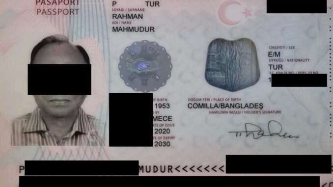 সংযুক্ত পাসপোর্টের তথ্য অনুযায়ী এটি ইস্যু করেছে তুরস্ক এবং সেই সূত্রে একুশে পদকে ভূষিত জনাব মাহমুদুর রহমান তুরস্কের নাগরিক। কিছুদিন আগেও এই পাসপোর্ট ব্যবহার করে তিনি ভ্রমণ করেছেন।